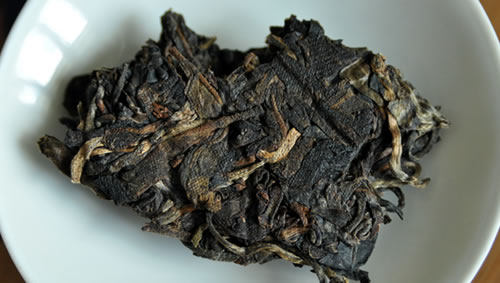 Le carré est assez épais, plus épais qu'une galette. Le thé est très peu compressé et il est très facile d'en extraire quelques feuilles.